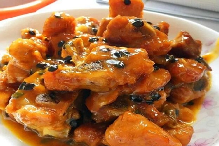 做法:骨用淘米水浸泡3个小时然后焯水断生,用姜丝爆香之后,小火炖煮直到熟透是我们寻常的做法。但是在起锅之前,加入百香果肉,再用文火收汁,这样烹饪出来,完全与我们寻常吃的排骨是两种感觉,浓郁的肉香带着酸甜,吃下去不仅能够起到解腻的功效,还让人吃完之后还想吃。