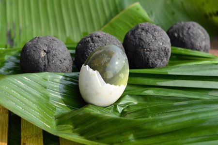 皮蛋在生活中常被叫成松花蛋、灰包蛋、包蛋等一些奇怪的名字,但皮蛋是我国比较传统的蛋制品,皮蛋主要就是用鸭蛋加工品。在皮蛋制作上首先把鸭蛋清洗干净。之后把纯碱跟食盐放在一个罐子里面,放入开水,可以用筷子把食盐跟纯碱充分的溶解,再加入生石灰、柴草灰,之后把料灰涂抹在新鲜的鸭蛋上面。