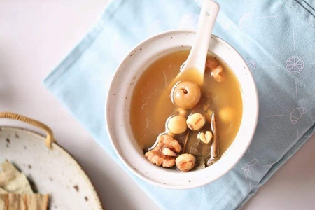 材料:莲子、莲藕、鲜荷叶、茯苓、核桃仁、姜、猪扇骨。