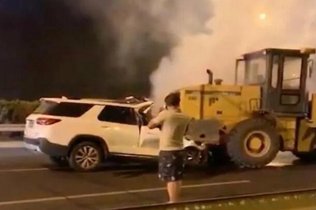 7月16日3时许,北京朝阳区南四环外环主路十八里店南桥西侧,一辆疑似路虎suv追尾一辆铲车,发动机开始冒烟,铲车司机下车后,只顾打电话,并未对铲车进行挪车,并对suv车内人员进行抢救,之后车内2人死亡。