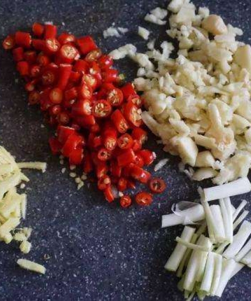 3、将小米椒切碎,大蒜剁成蒜蓉;