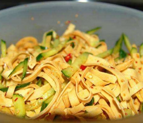 夏天来了可以做一道简单豆皮拌莴笋,这道菜简单的要死,每个人看了一遍都会。莴笋最天然的清香味。莴笋的热量十分低,豆腐皮又含大量的蛋白质,非常适合当夏天的凉拌菜。