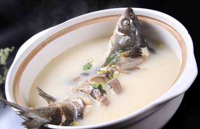 做法:将鲫鱼剖腹后,清洗干净待用。把鲫鱼放置3成热的油中过油,以去除鲫鱼的腥味。加入适量水和调料,用小火清炖40分钟。起锅时加入少许蛋奶,能使汤变得白皙浓稠,口感更佳。