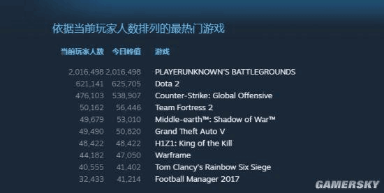 第二名仍然是《Dota2》,今日峰值曾达到了625705人。第三名则是《CS:GO》,今日峰值曾达到了538907。