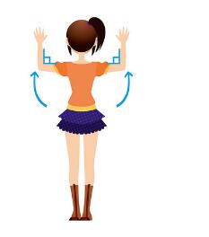 STEP2.打开肩胛骨,双手手腕缓缓举起,手肘维持在肩膀的高度呈直角90度,维持1~2秒。
