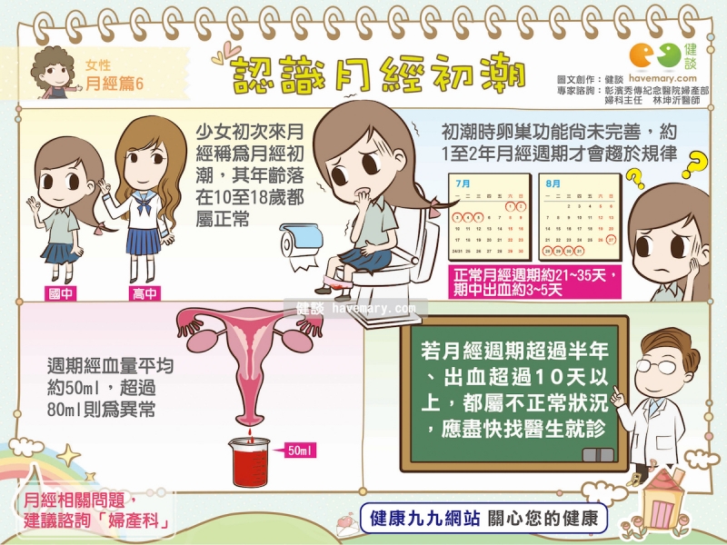 月经初潮几岁算正常?月经初潮后多久才规律?,月经初潮几岁算正常?当少女第一次来月经时,就代表青春期正式到来。少女初潮年龄落在10至18岁都算正常,但若超过18岁仍无月经,则应尽快就诊检查。 少女第一次来月经称为月经初潮,这是