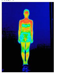 原本呈现深蓝色的脚部体温上升,小腿肚则变成较温暖的橘色。