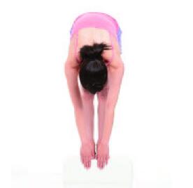 在站直的状态下,使上半身往前弯,让身体背面肌肉软化,特别是对于脚部的浮肿状况特别有效果。 身体较僵硬的人如果无法让双手贴在地板上也无妨。