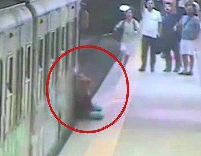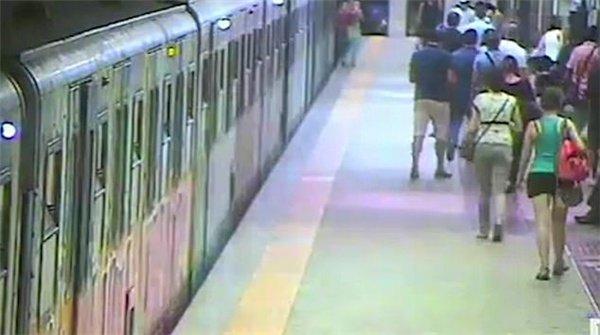 日前,在罗马地铁站发生了可怕的一幕,一名女子出现在列车尾部车厢。她刚进去半个身子,突然又转身离开车厢。此时,车门正好关闭,而这名女子的手提包带子却被车门牢牢地卡住。眨眼功夫,列车启动加速驶离站台。一旁的乘客上前帮忙,但为时已晚。