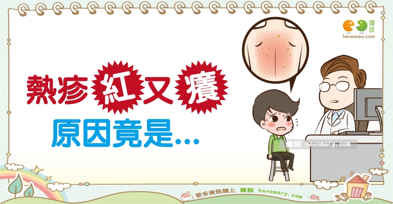 热疹常见于婴幼儿身上,可能原因包括婴幼儿汗腺尚未成熟、汗腺阻塞,或因穿着过多衣物,导致汗水无法顺利排出、挥发,对皮肤造成刺激而形成红疹,也就是常听到的痱子、汗疹,严重时也可能合并发炎或因细菌感染而出现脓包。