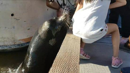 女孩被海狮拖下水 外国网友赞跳下救孙女的外公