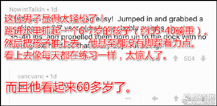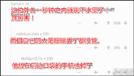 5月21日,在加拿大里士满史提夫斯顿的一个渔人码头,一名华人女孩被海狮拽入水中,而女孩的外公毫不迟疑,迅速跳下水中将她救起。视频在reddit曝光以后引发热议,短短一天就得到了18000多赞和近3000条评论。女孩外公的行为迅速圈粉,外国网友纷纷夸他勇敢而敏捷。
