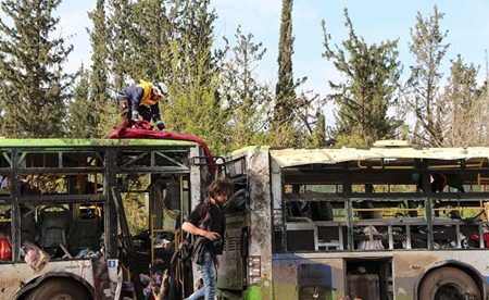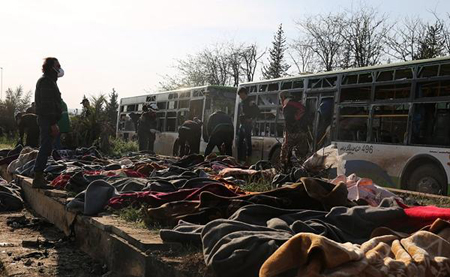 4月18日电,据英国《每日邮报》网站4月17日报道,当地时间4月15日,叙利亚拉希丁(Rashidin)发生自杀式炸弹袭击,造成至少126人死亡,其中包括68名儿童。据悉,袭击者故意用薯片引诱儿童靠近自己,之后才引爆炸弹。
