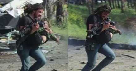 在袭击者引爆炸弹后,身处现场的叙利亚摄影师Abd Alkader Habak第一时间投入救援中。在救出几个孩子后,眼看死伤越来越多,自己的努力杯水车薪,筋疲力尽的他跪倒在地无奈痛哭。在他旁边的草地上,一个孩子一动不动,已经没有了生命迹象。