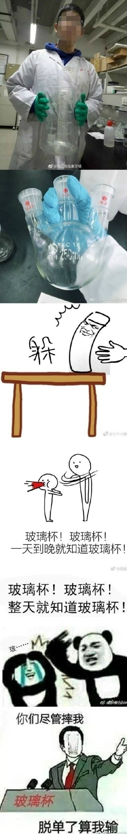 原图欧巴:不要说玻璃杯了,要是长得好看,专业书都给你撕烂了。