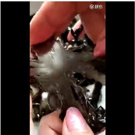 其实,视频中出现的情况完全可以用紫菜自身的特性来解释。紫菜展开后本身就是半透明的,视频中紫菜出现嚼不动、咬不烂、扯不断的情况,可能是因为泡紫菜的水温度不够;颜色呈黑褐色可能是因为储存时间比较久了;至于腥臭味,其实这是紫菜本身的味道,主要是由1-辛烯-3-醇和庚二烯醛两种风味物质组成。这些都不能说明紫菜存在质量问题,更不能支持视频中塑料假紫菜的说法。