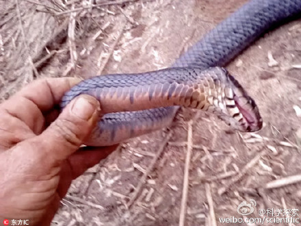 心机大蛇遇人类竟装死 蛇会主动攻击人吗?一条狡猾的蛇为了躲过捕食者的进攻,竟然会玩装死的把戏!来自美国德州的捕蛇专家Eric Johnson用一段视频记录下了这罕见的一幕,一条东部靛青蛇发现Eric向它逼近,想要飞速开溜。