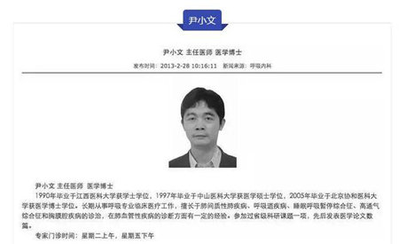 12月8日,厦门大学附属中山医院呼吸内科主任医师尹小文博士因心脏骤停抢救无效去世。