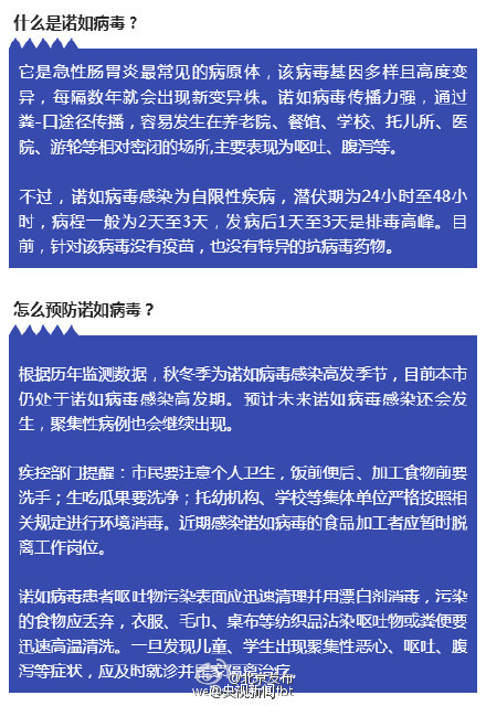 诺如病毒感染性强,以肠道传播为主,可通过污染的水源、食物、物品、空气等传播,常在社区、学校、餐馆、医院、托儿所、孤老院及军队等处引起集体暴发。疾控专家称,病程为自限性,一般2~3天即可恢复。