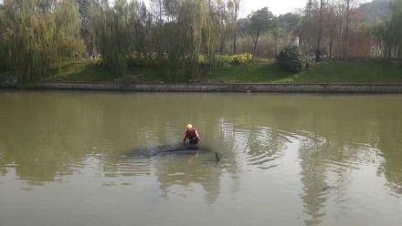 接到求助的海宁海豹救援队队长侯雪源带了6个队员赶到现场时,车内祖孙已被热心市民救了上来。当时车子还见个顶,我们潜水员马上下去,将吊车绳索固定好。 侯雪源说,中午12点35分,落水车辆被吊起。这是辆深蓝色的奥德赛商务车,保险杠都被撞坏了。