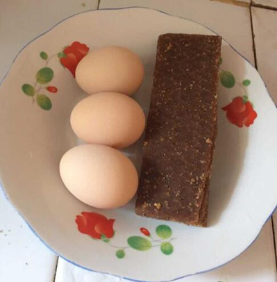 材料,土鸡蛋3个,红糖一块,红艾一大扎。