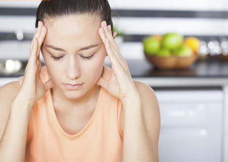 这类型的头痛,通常表现为头皮紧绷,肩颈僵硬疼痛,多为颞侧(两侧)头痛,有时从肩颈往上痛到头部,如果是女生还可能会出现月经性头痛甚至痛到想吐,当月经一来血液(来自肝脾)下行到子宫,此时肝调畅气机的功能,就会因为肝血供应减少而发挥不良,这时候就会产生不适的经前症候群,「肝气(火)上逆」则头痛、情绪不稳定、易怒、冒生理痘、身体燥热;若「 肝气犯胃」就会造成头痛到想吐。