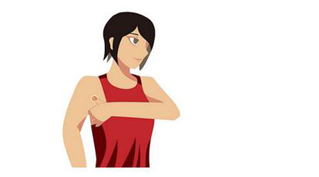 STEP1.以左手的大拇指按右边的锁骨和腋下之间的云门穴,剩的4只手指放在腋下,露出微笑从鼻子缓缓吸气。