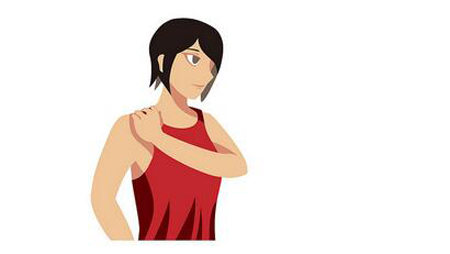 STEP3.以左手的无名指按压右肩上的肩井穴,露出微笑从鼻子缓缓吸气。