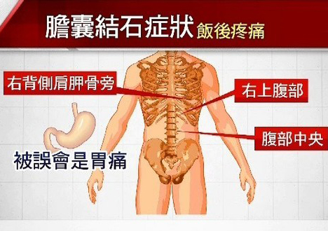 出现饭后腹部疼痛注意为胆囊结石特征,一名55岁病患长期饭后胃痛,自行服用胃药后即有改善。 但日前参加尾牙后,突然上腹部大痛,经检查发现,为胆囊结石合并急性胆囊炎