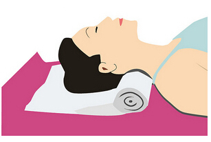 3.完成! 将卷起的部分放在颈部下方,剩余的部分则摊开放在头部下方,根据颈部疲劳程度的不同,可以增减卷起的部分,稍感不适就绝对要停下来,以让自己舒服的高度为准。