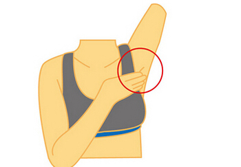 步骤2:如图一般,将叁根手指放在腋窝淋巴结之上。