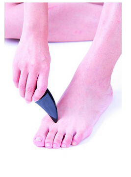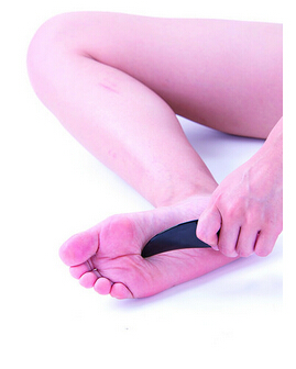 4. 以刮痧板的鱼尾圆角在涌泉穴点按1分钟。