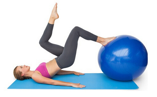 注:抗力球有时候会太高,可以换成小颗一点的球,大约是排球大小,或是脚踩的位置不要太高,以免让身体上升太多,容易压迫到颈椎。(此图的腰有点高,建议降低一些)
