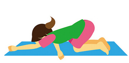 2两只手贴地向前延伸,维持膝盖90度,确实向前伸展上半身。