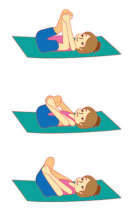 1. 呈仰躺姿势,双手抓住脚掌或脚踝,合起脚掌。