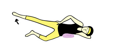 2.在骨盆不动的情况下,上方的脚往稍微偏后的方向慢慢抬高,并维持5秒钟。