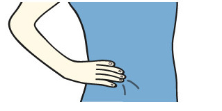 2右手紧紧捏住位于右侧的耻骨上方腰部。