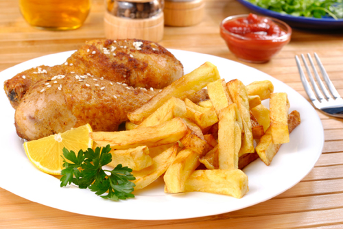 中餐比较适合吃炸物,因为中午之后的活动会消耗大部分的食物热量。但是,如果晚餐吃炸物又喝酒的话,脂肪会更容易堆积,因此要特别注意。
