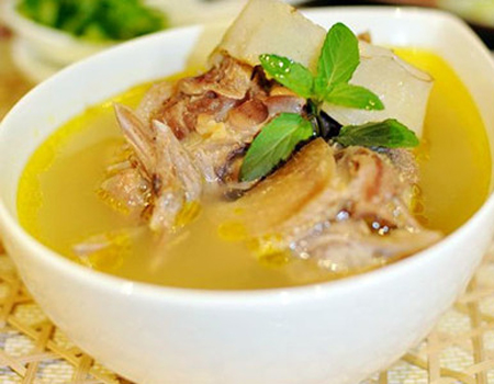 制作方法:老鸭剁块,飞水,油锅爆炒入料酒,炒出香味,将浸泡好的沙参、知母入净布包起,同老鸭一同小火微煲,直至酥软,加入调料上桌即可食之。