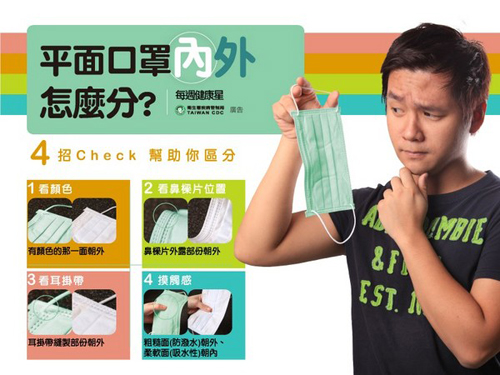 H7N9病例,让不少人抢购口罩自保,但你知道正确的戴法吗?不管你买的是外科口罩或活性碳口罩,请记得「有颜色」(深色面)的那面要朝外、鼻梁片朝上,且应确实按压鼻梁片,使口罩紧贴脸部、下巴密切罩好,这才是最正确、最有效的口罩戴法喔!