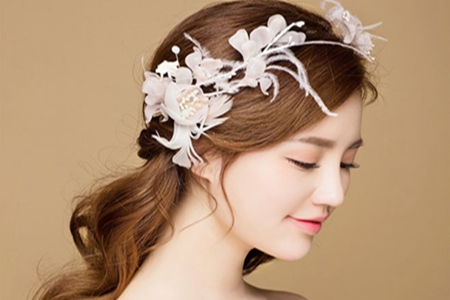 浪漫法式卷发。婚礼上最少不了的就是浪漫动人的场景,而法式卷发就能更好的将浪漫气息发挥的淋漓尽致。在弄这个发型之前要将整体的头发弄成微卷,然后在发型上只要简单的将整体的头发束起来,然后将头发分为三小截,每一小截都要弄出蓬松感,然后用花朵发圈配饰扎起来就好。最后在前面发型上箍上鲜花头饰,整体的浪漫法式卷发就大功告成了。