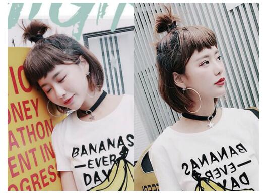耳下波波头发型扎发也很好看哦!把长度刚好的头发分出一部分,扎成一个丸子立在头顶,看起来青春又充满活力,二次元式的刘海遮挡额头修饰脸型长度,再把耳朵两边的头发夹至后面,女生好看的脸颊线条显露无遗,戴上一副圆圈大耳环,更添线条美哦。