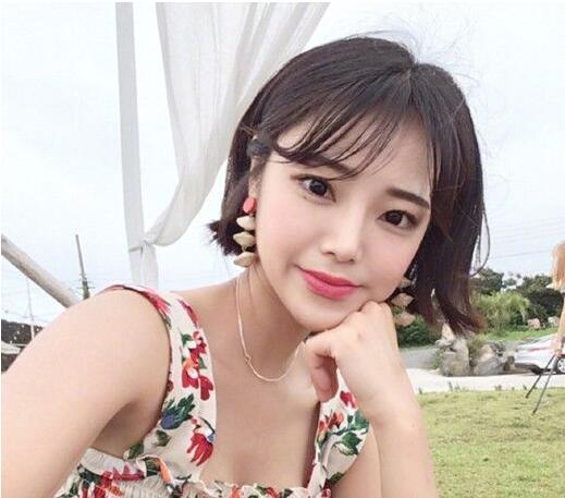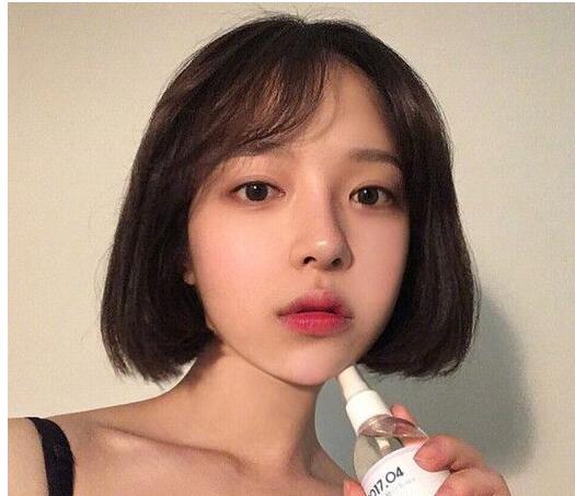非常受女生喜欢的一款夏季短发,长度刚好又很时髦显气质,发尾稍稍带一点内扣很洋气,搭配韩式流行的八字刘海还蛮好看的。