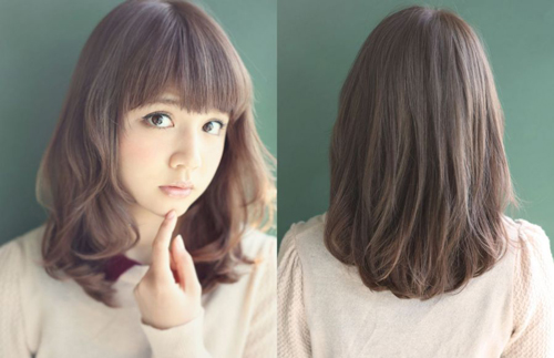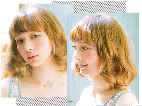这款四六分刘海的棕金色长适合圆脸、方脸mm,外翻卷曲的刘海能够很好地修饰mm脸型,让mm脸蛋看起来更小。