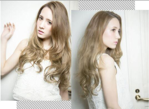 这款二八分的及腰长发刘海自然而下,发尾微卷内扣,很好地修饰了mm脸型,而棕金色的染发让mm更加像洋娃娃一样甜美可爱。