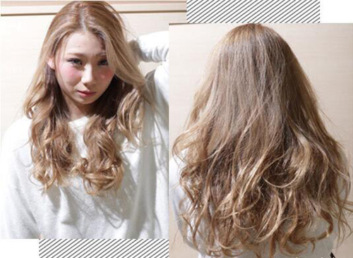 这一款非常的温柔可爱,带着成熟女性的温婉,选用的染发颜色并不是亮眼前卫的金黄色而是更加稳重内敛的棕金色。
