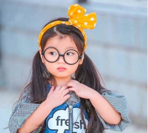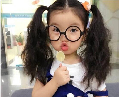 长得肉肉的阿拉蕾真心挑人喜欢,不仅萌萌哒更是懂事~扎起一款丸子头的她显得格外的可爱呢,配上大大的眼镜框,有点小博士的模样。