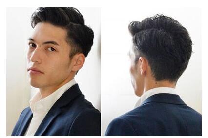 如果想要给人一种成熟稳重的感觉,那这款偏分梳理的短发真的很不错,短发采用二八分的梳理,偏向一侧梳理的短发发丝有着内蓬的设计,刘海向后梳理,搭配上西装外套很有绅士风度。