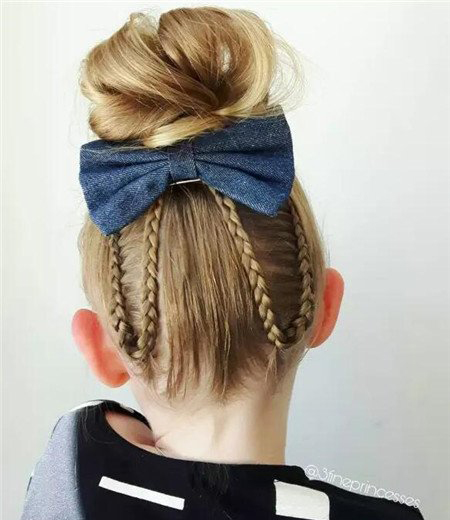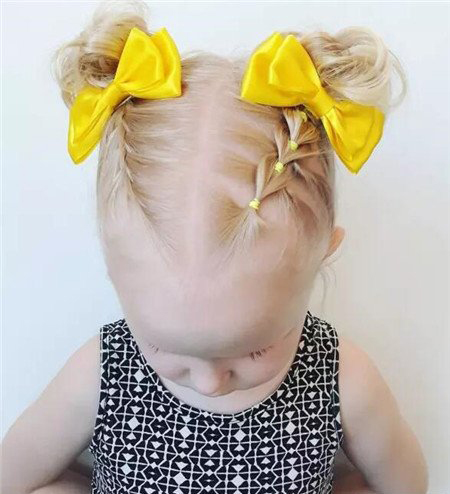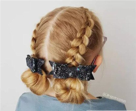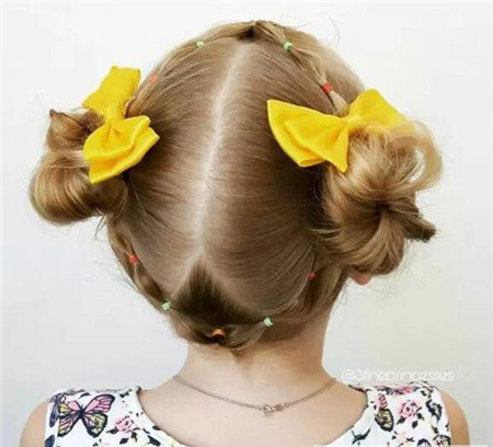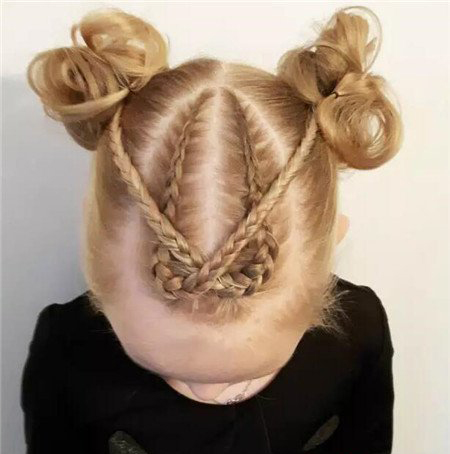 菱形风格的花苞头发髻发型,款式新颖,又很适合小孩子。