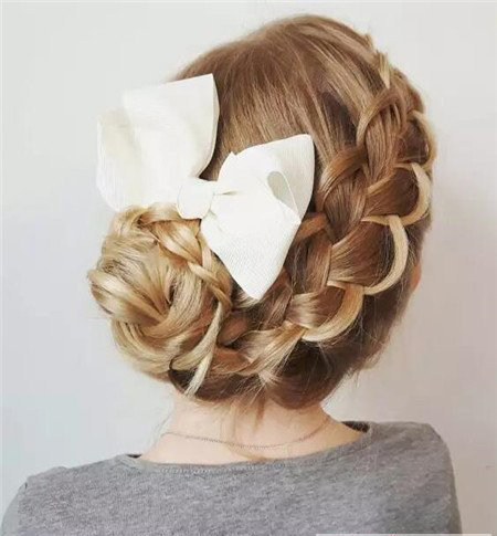 蜈蚣辫、三股辫打造的花苞头编发,怎么看都有小可爱的优雅。